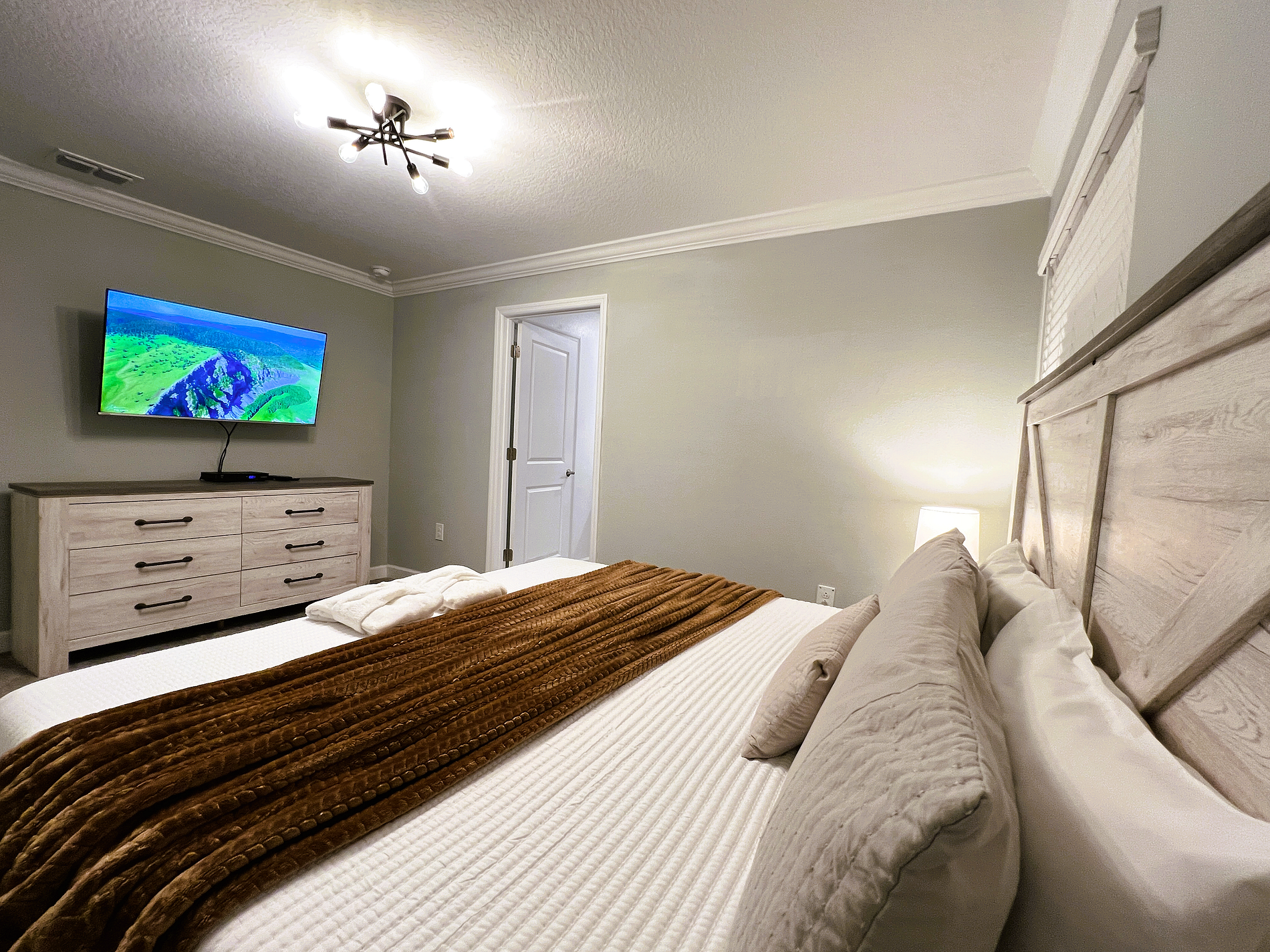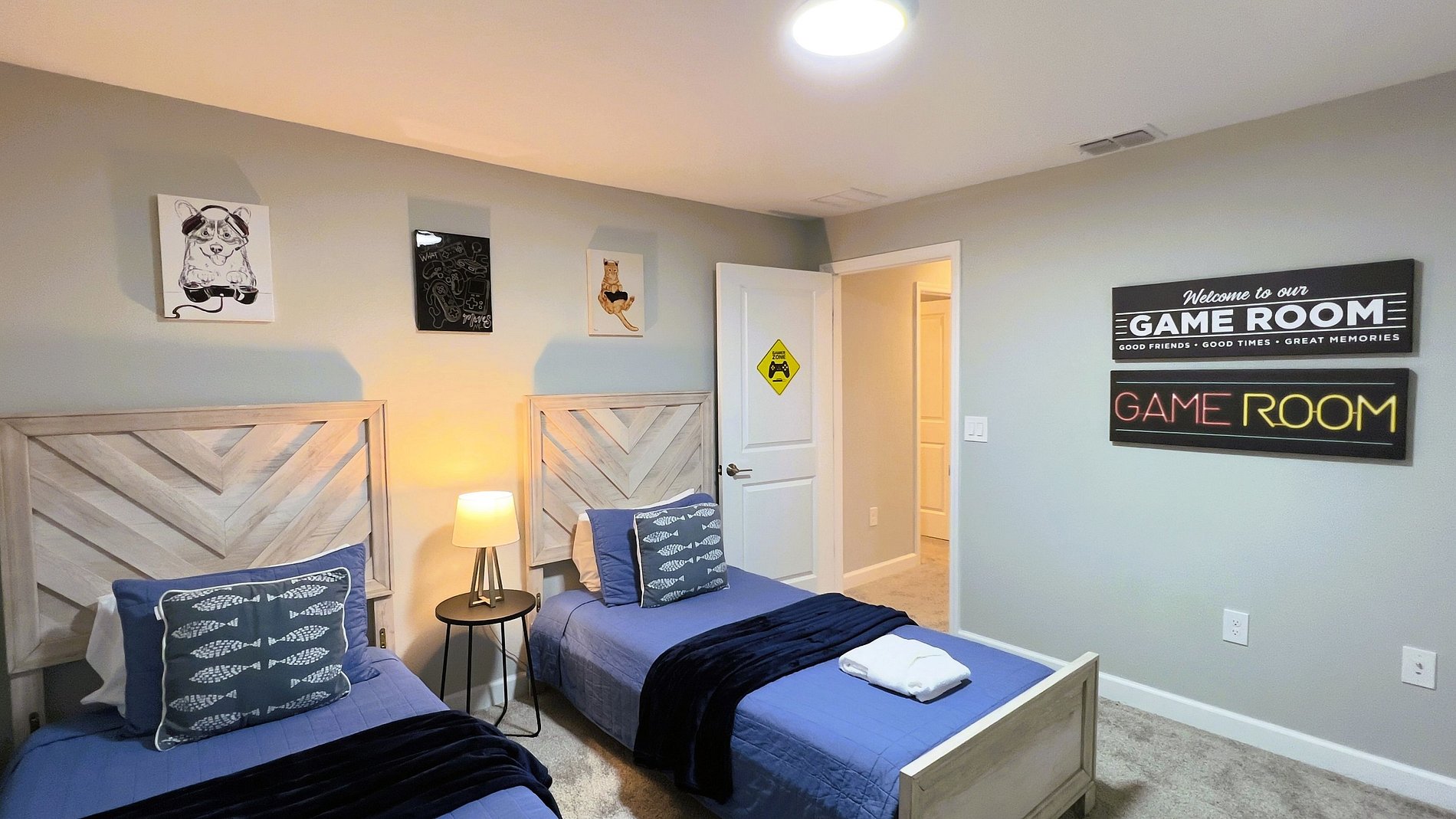 First Floor: The kitchen is fully equipped with updated appliances and gourmet cookware for homemade meals your group will love. The living space is open concept and connects the kitchen with the living room and dining room for unobstructed social living. An 6-seat dining table and 4-seat breakfast bar also contribute to the communal atmosphere, and give you the option for both formal and casual dining. In addition to the bedrooms and bathroom, the first floor features a full washer and dryer to make doing the laundry easy and free! Keep up with the laundry and make a clean getaway