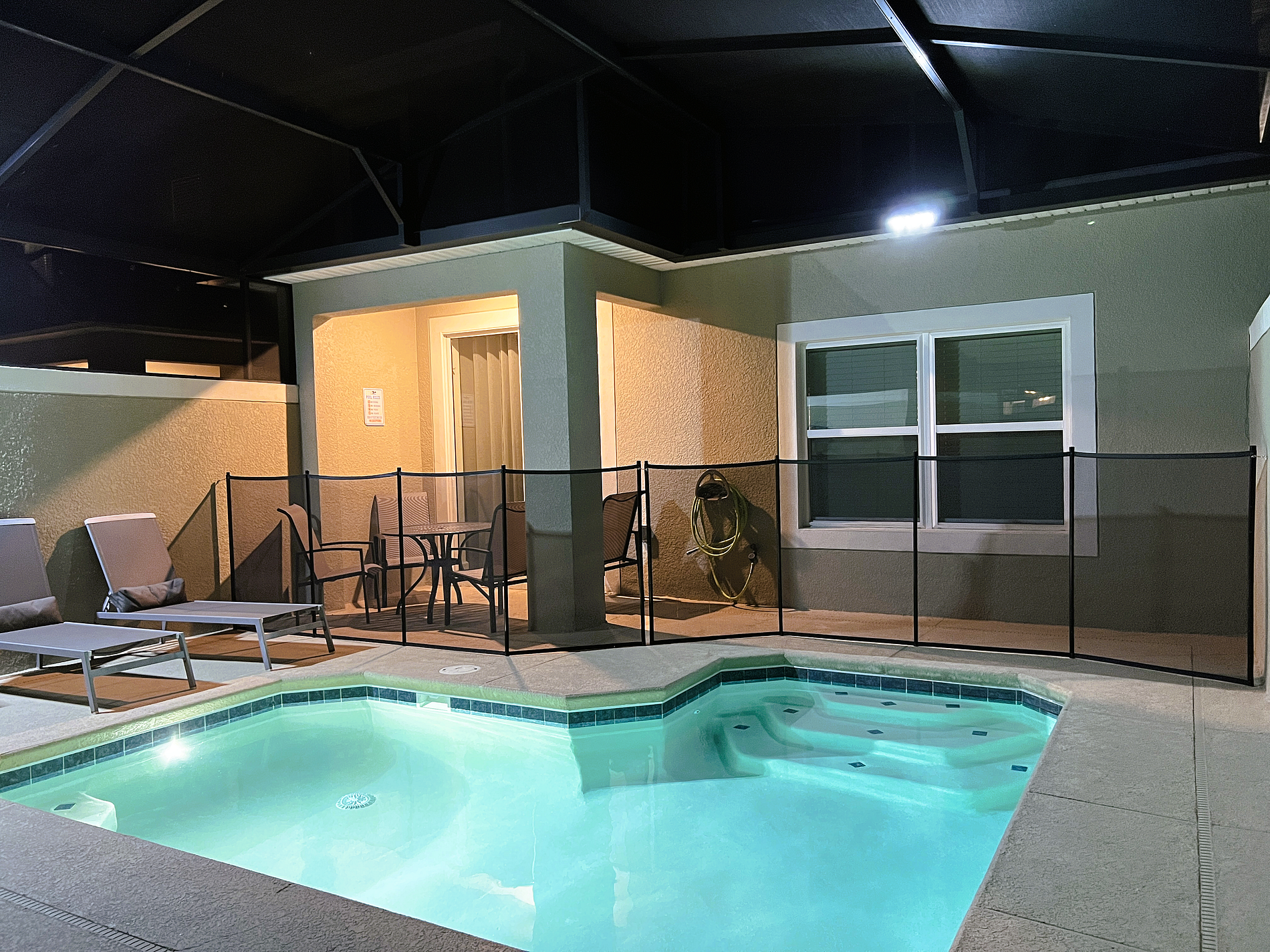 External Area: In the back of the home you'll find a large screened-in pool. A covered lanai with patio furniture facilitates. Optional pool heating also lets you enjoy swimming during Florida's mild fall and winter months. A barbeque grill (also optional) even lets you enjoy the weather while you cook! The grill and pool heating can both be ordered at time of booking. Pool heating is recommended for the months of November through April in Orlando, and requests should be submitted at least 48 hours in advance.