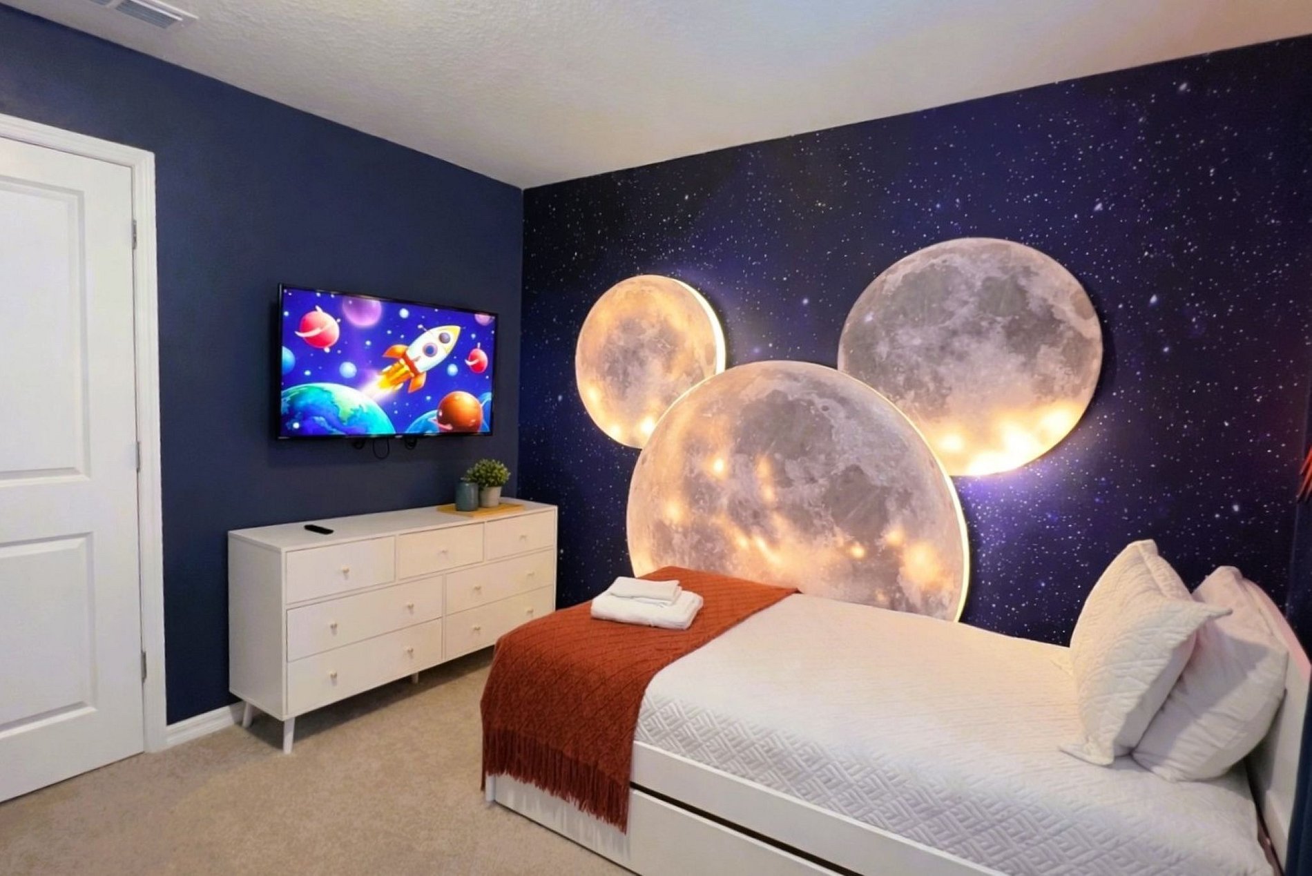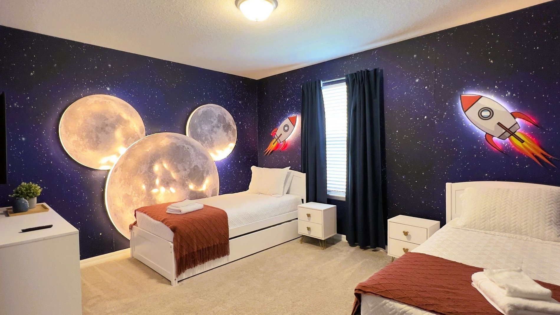 Luxury 10-bedroom villa in Windsor Cay, just 10 miles from Disney, perfect for families and groups up to 28 guests. Enjoy a private screened pool, Star Wars–themed game room, themed bedrooms, and spacious living areas. Guests have full access to the REEF CLUB resort ( 207 pies far from the house or 1 minute walking distance) with lazy river, water slides, mini golf, fitness center, and more. Ideal location near Orlando attractions.