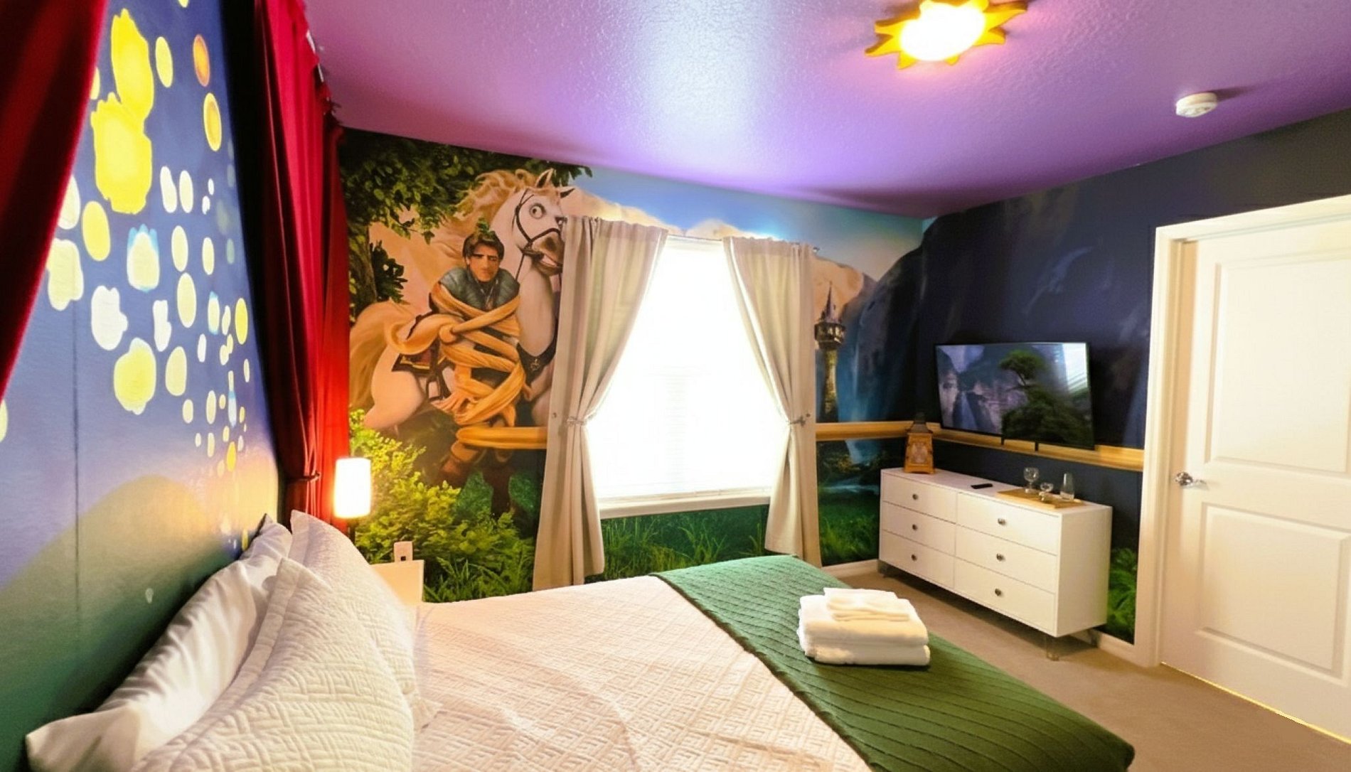 This beautiful 10-bedroom home in Windsor Cay was thoughtfully designed to offer comfort, space, and fun for families and groups. The bright, modern décor, themed bedrooms, and a top-notch game room create an inviting atmosphere for guests of all ages. With a fully equipped kitchen, spacious living areas, and TVs in every bedroom, everyone can relax and enjoy their stay.