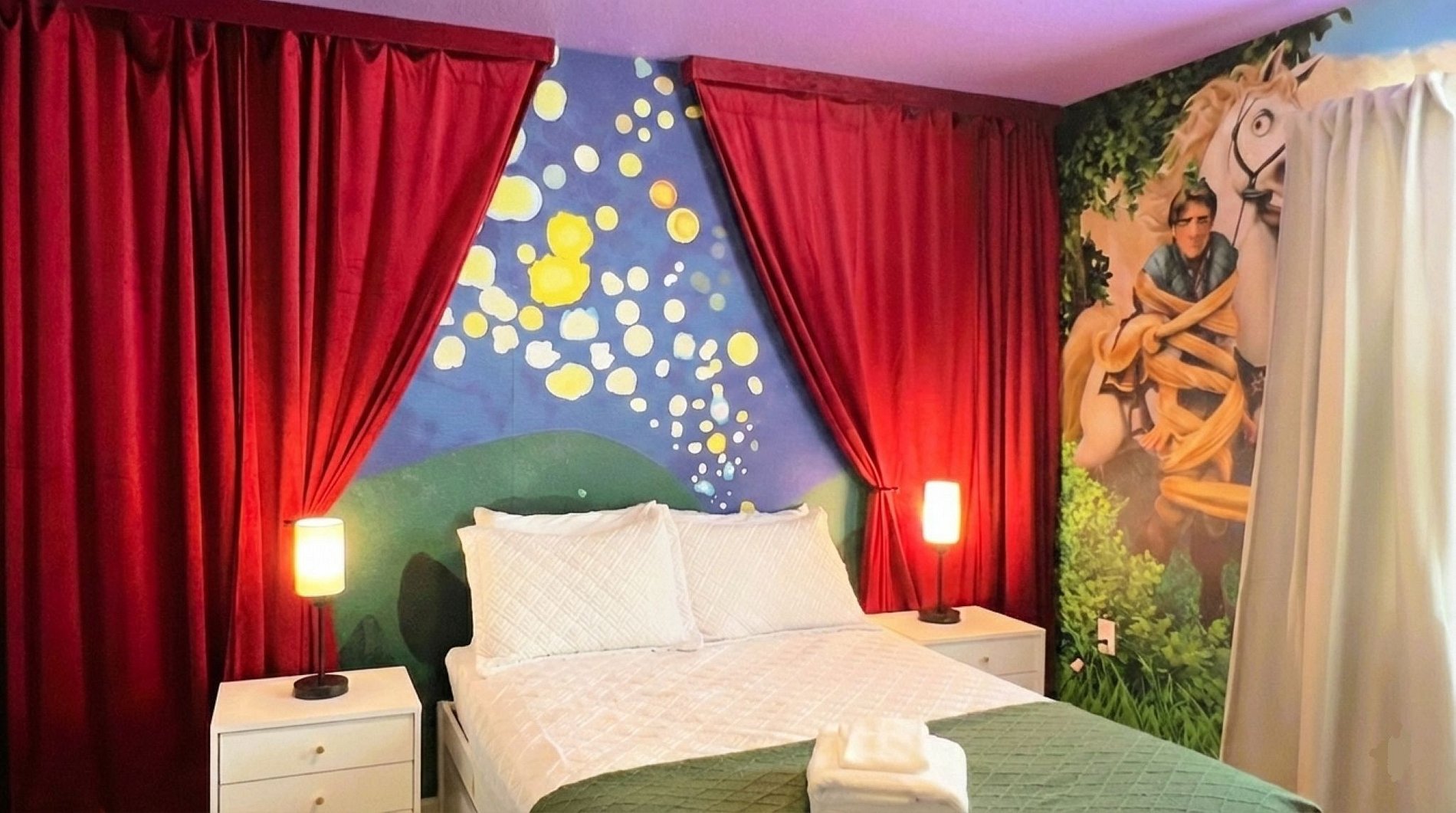 This spacious 10-bedroom, 8-bathroom home comfortably accommodates up to 28 guests and is located just 10 miles from Walt Disney World. The property features themed bedrooms, a top-notch game room (garage converted), a private screened-in pool with a child safety fence, and modern amenities throughout. Each stay includes a unique door code for your security.