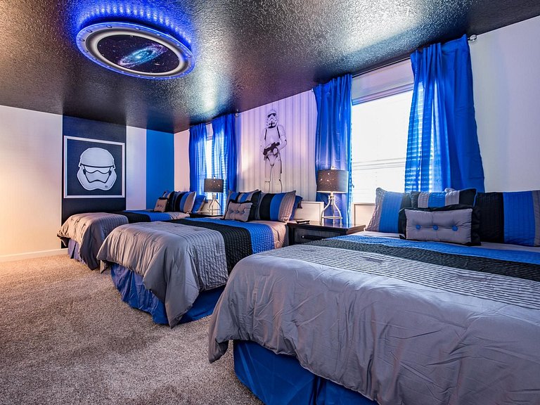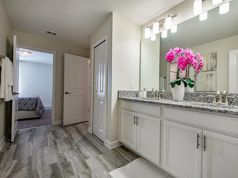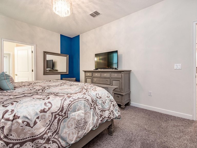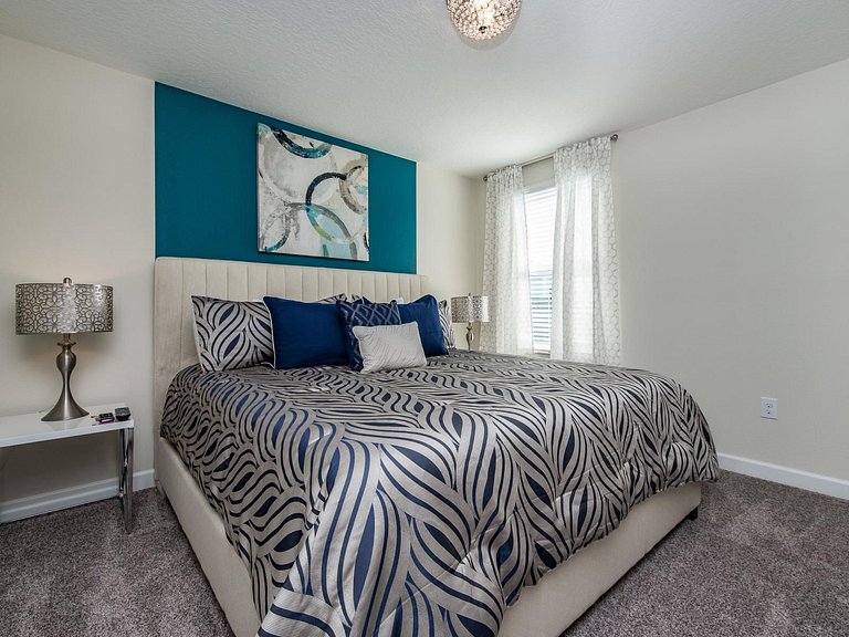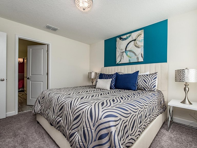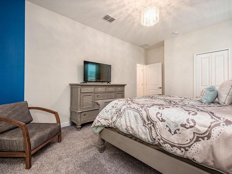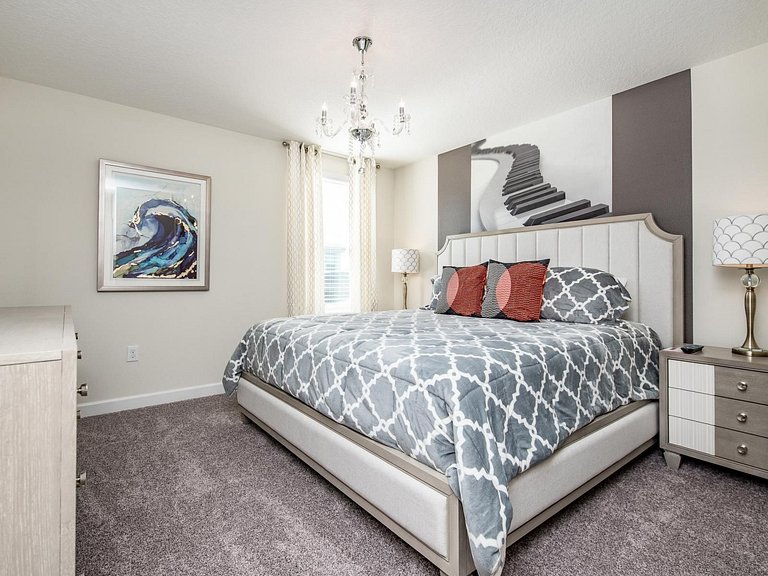 Guests of this home will enjoy unlimited access to Champions Gate's full range of luxury amenities. The home is just 8 minutos (walking distance) from Champions Gate's luxury clubhouse, Oasis Club, where you'll find an amenity center with huge resort-style pool, lazy river, water slides, kids' splash pad, and sand volleyball courts. Rentable cabanas are available poolside for luxury lounging with A.C., indoor and outdoor seating, kitchenette, mini-fridge, bathroom, and shower. And they're the perfect place to enjoy a drink from the tiki-bar. Inside the huge clubhouse you'll find even more great amenities, such as a full restaurant, state-of-the-art fitness center, aerobics room, arcade, and more! Need to get a little work done during your vacation? A meeting space with high-speed internet gives you a quiet place to take care of business. Champions Gate also boasts 2 or Florida's most renowned golf courses. With the twin Greg Norman-designed National and International, you'll find two distinctly different, equally enjoyable rounds of play. Test your accuracy on the National's small shot-maker's greens, as you make your way through a patchwork of gorgeous Florida landscapes. Want to really see what you're made of? With one of Florida's highest difficulty ratings, the coastal links-style International promises to challenge even the most seasoned pro.