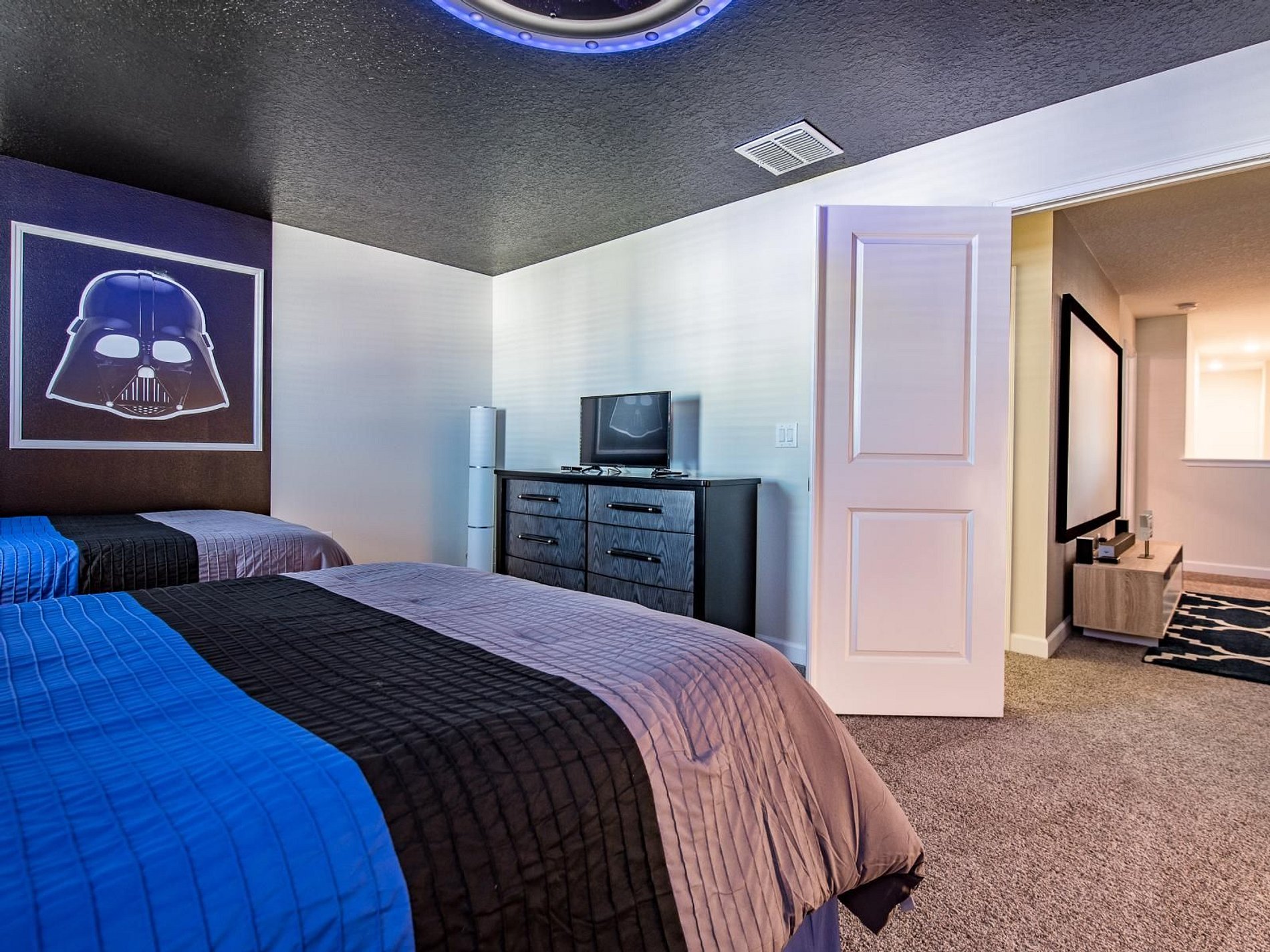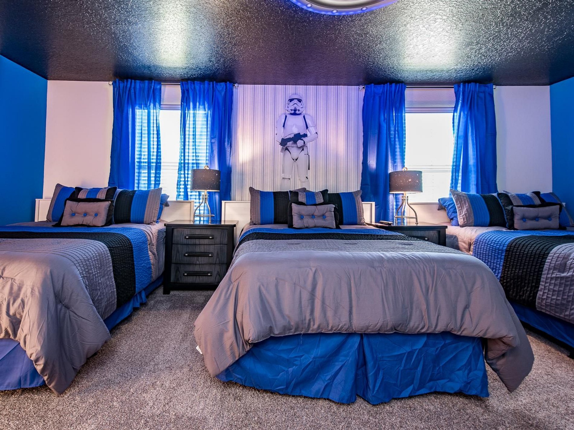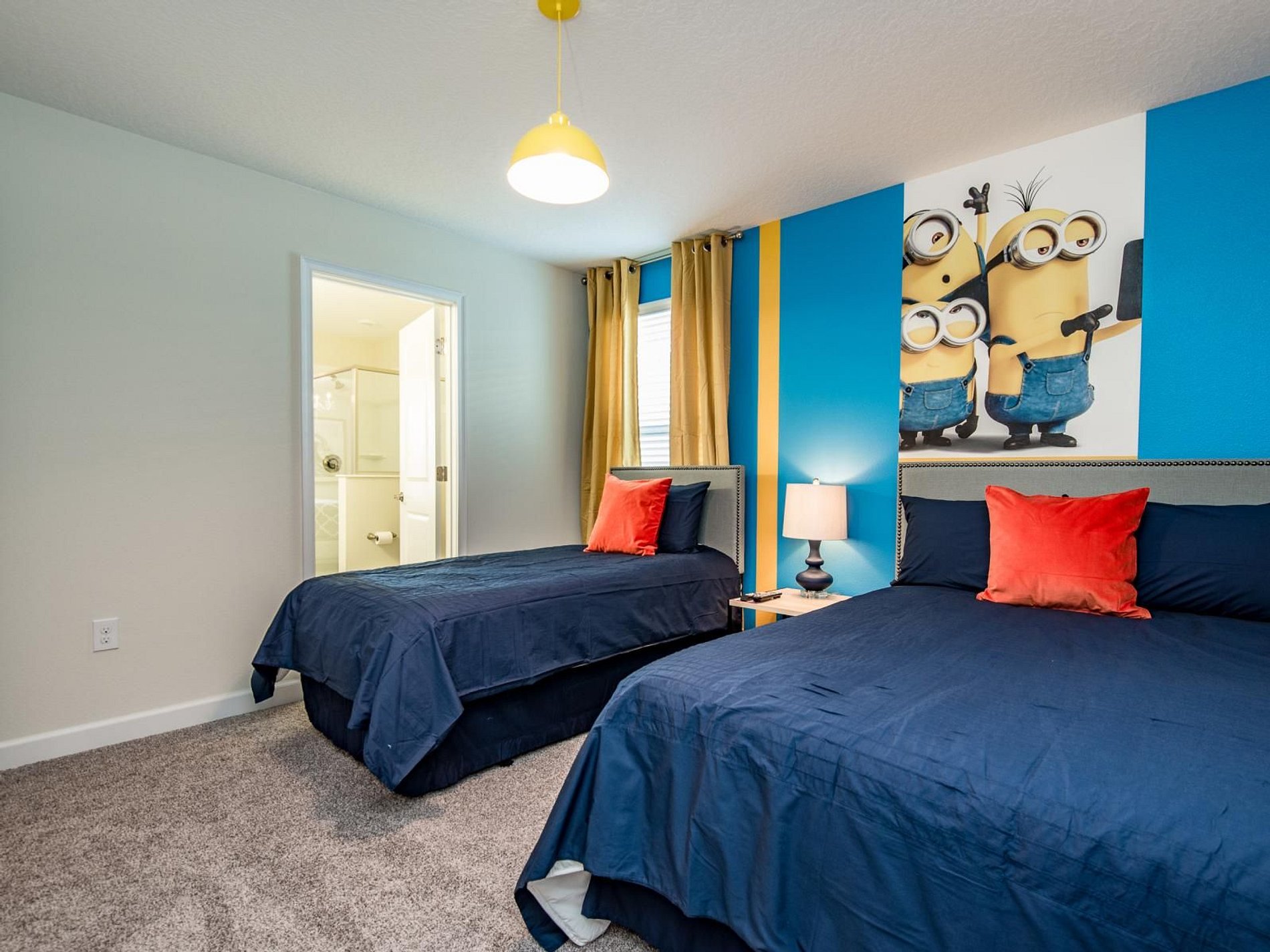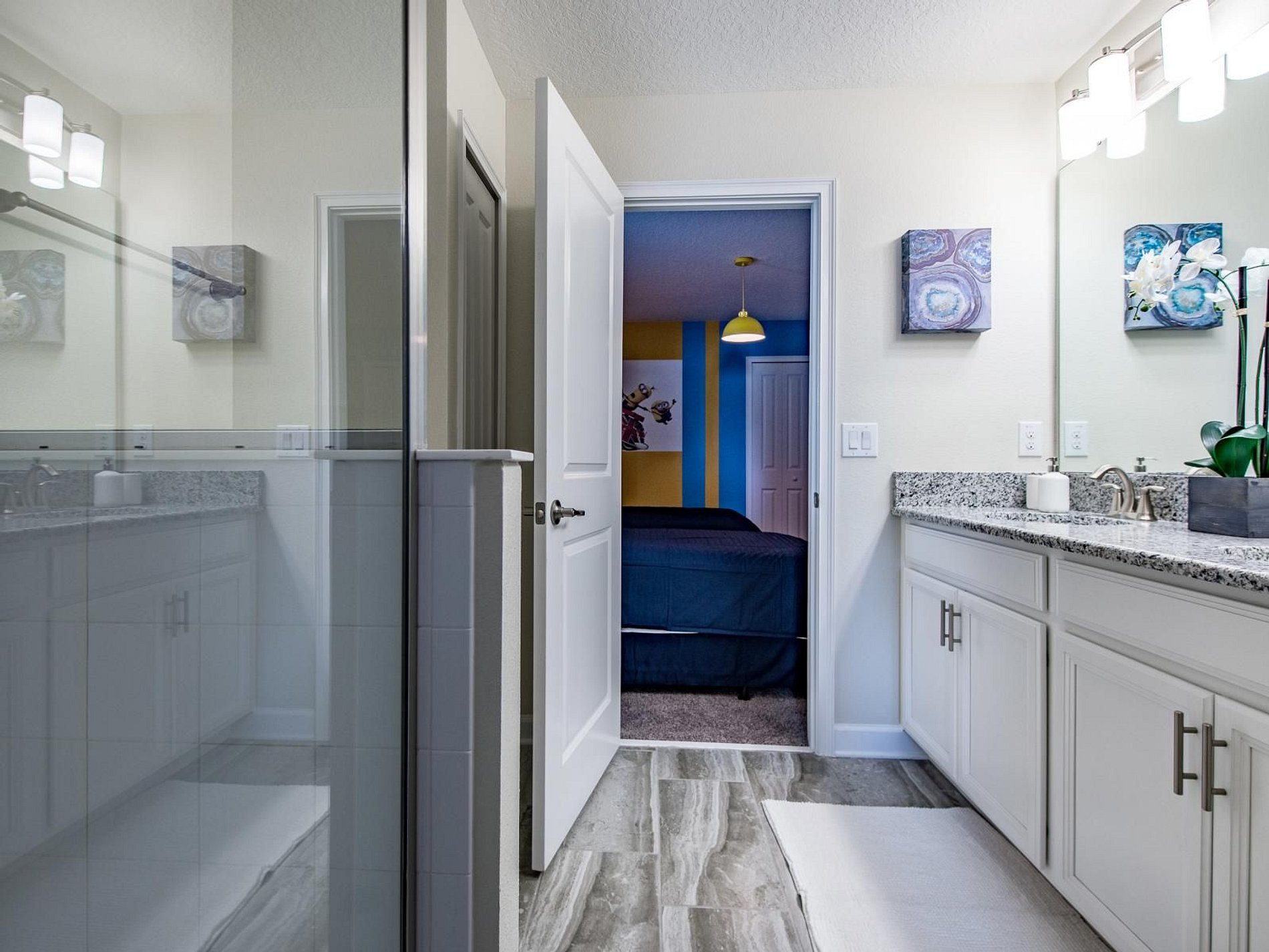 This beautiful home in Champions Gate features 9 bedrooms and 5 full baths, with 4,250 square feet of living space and 14 beds, sleeping up to 25 of your closest friends or family. The unit boasts a private screened-in pool with safety fence, a hot tub, and convenience to Disney World and all major attractions!