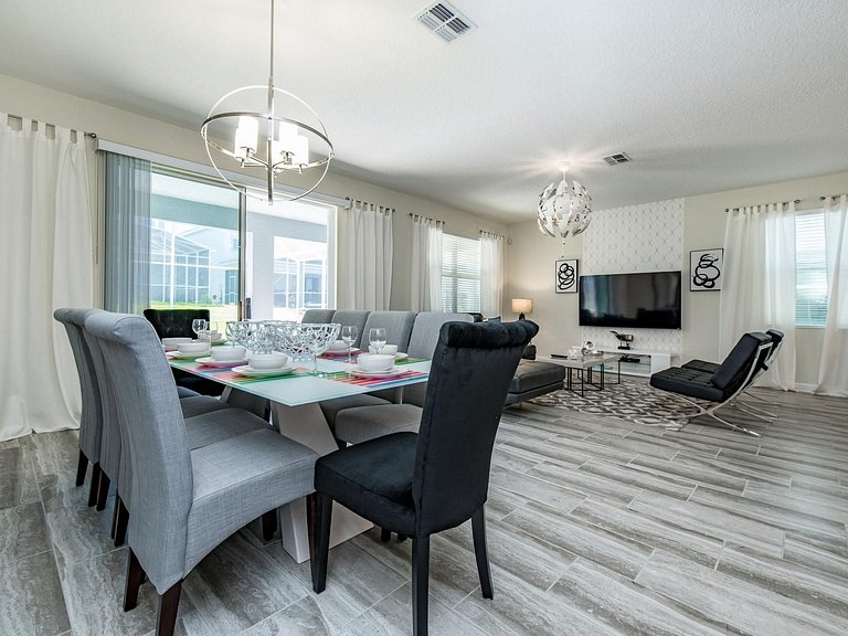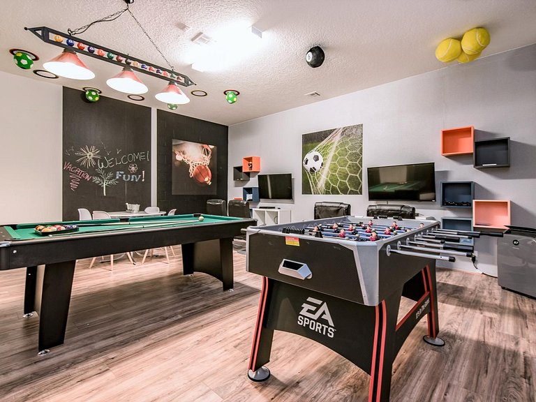 This beautiful furnishings to the incredible game room, this brand new 9 bedrooms/5 bath / sleeps 25 vacation home in ChampionsGate has it ALL and much, much more!