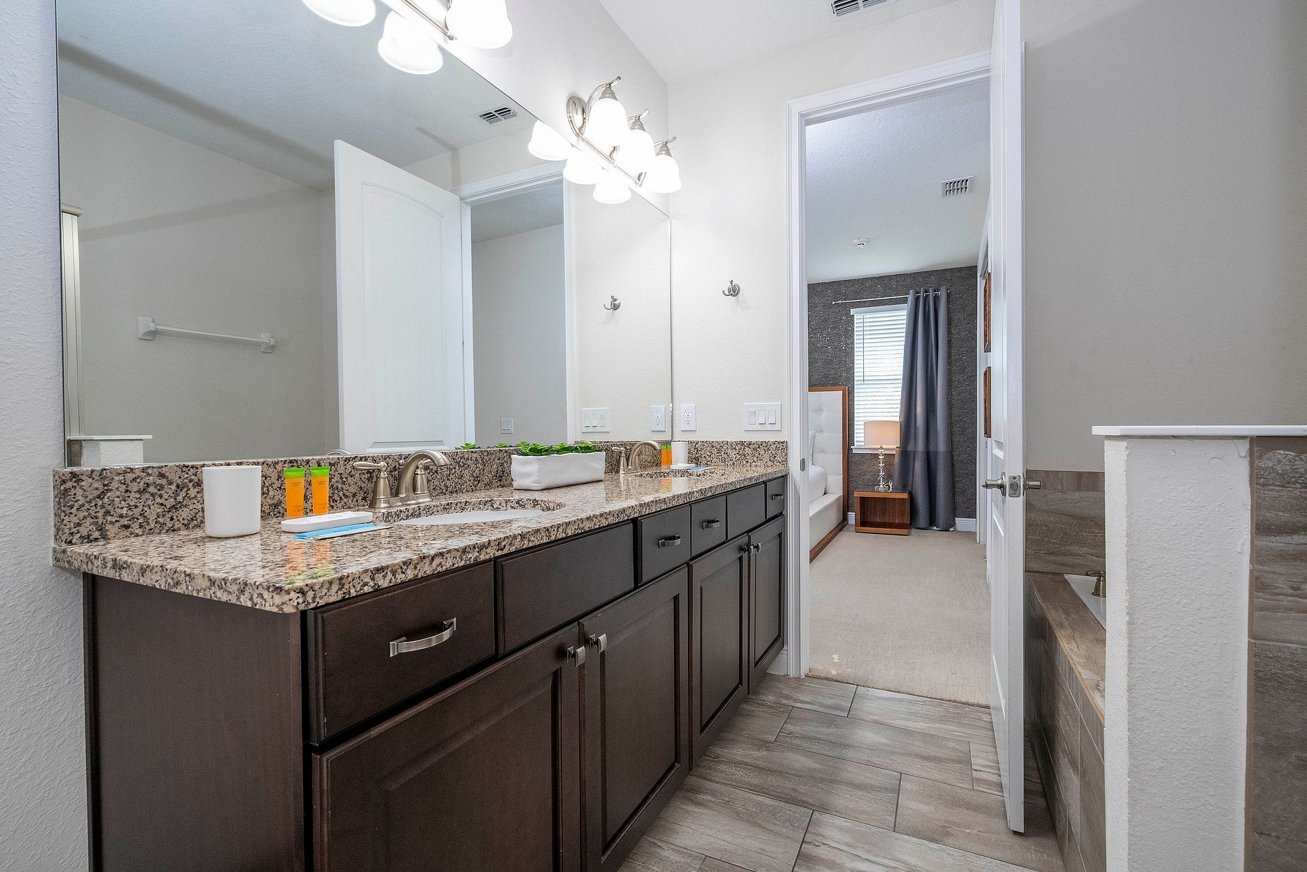Área externa: En la parte trasera de la casa encontrará una gran piscina y spa. Un mobiliario de patio y un medio baño. La calefacción opcional de la piscina también le permite disfrutar de la natación durante los meses templados de otoño e invierno de Florida. ¡Una parrilla para barbacoa (también opcional) incluso le permite disfrutar del clima mientras cocina! La parrilla y la calefacción de la piscina se pueden solicitar al momento de la reserva. Se recomienda la calefacción de la piscina para los meses de noviembre a abril en Orlando, y las solicitudes deben enviarse con al menos 24 horas de anticipación.