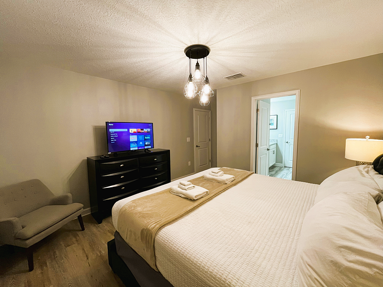 Os hóspedes desta casa desfrutarão de acesso ilimitado a toda a gama de comodidades de luxo do Champions Gate. A casa fica a apenas 8 minutos (distância a pé) do clube de luxo do Champions Gate, o Oasis Club, onde você encontrará um centro de amenidades com uma enorme piscina estilo resort, rio lento, toboáguas, parque infantil e quadras de vôlei de areia.