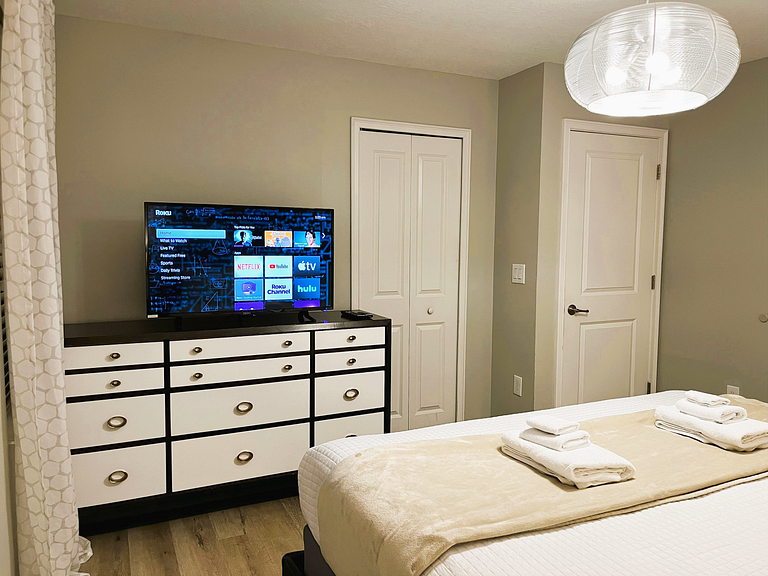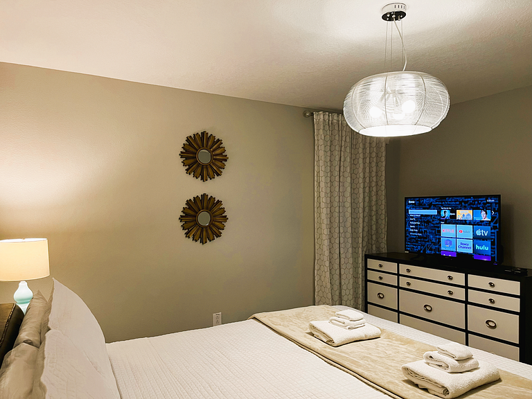 O ESPAÇO: • TV a cabo e WIFI grátis • Área de jantar formal • Toalhas/lençóis limpos • Cozinha totalmente equipada • Loft com TV de tela plana • Ar condicionado central • Máquina de lavar/secar (na casa) • Toalhas de rosto não são fornecidas • Secador de cabelo, ferro e tábua de passar • Aquecimento da piscina (custo extra) - Opcional ** • Aluguel de churrasqueira (custo extra) - Opcional • Piscina privativa + cerca de segurança para crianças • 2 quartos familiares com TV de tela plana • Código de porta privativo para cada estadia de hóspede • Lanai coberto + móveis de pátio e espreguiçadeiras • outros equipamentos entre em contato conosco para providenciar, pois temos uma grande variedade de itens disponíveis para alugar. (Custo extra)