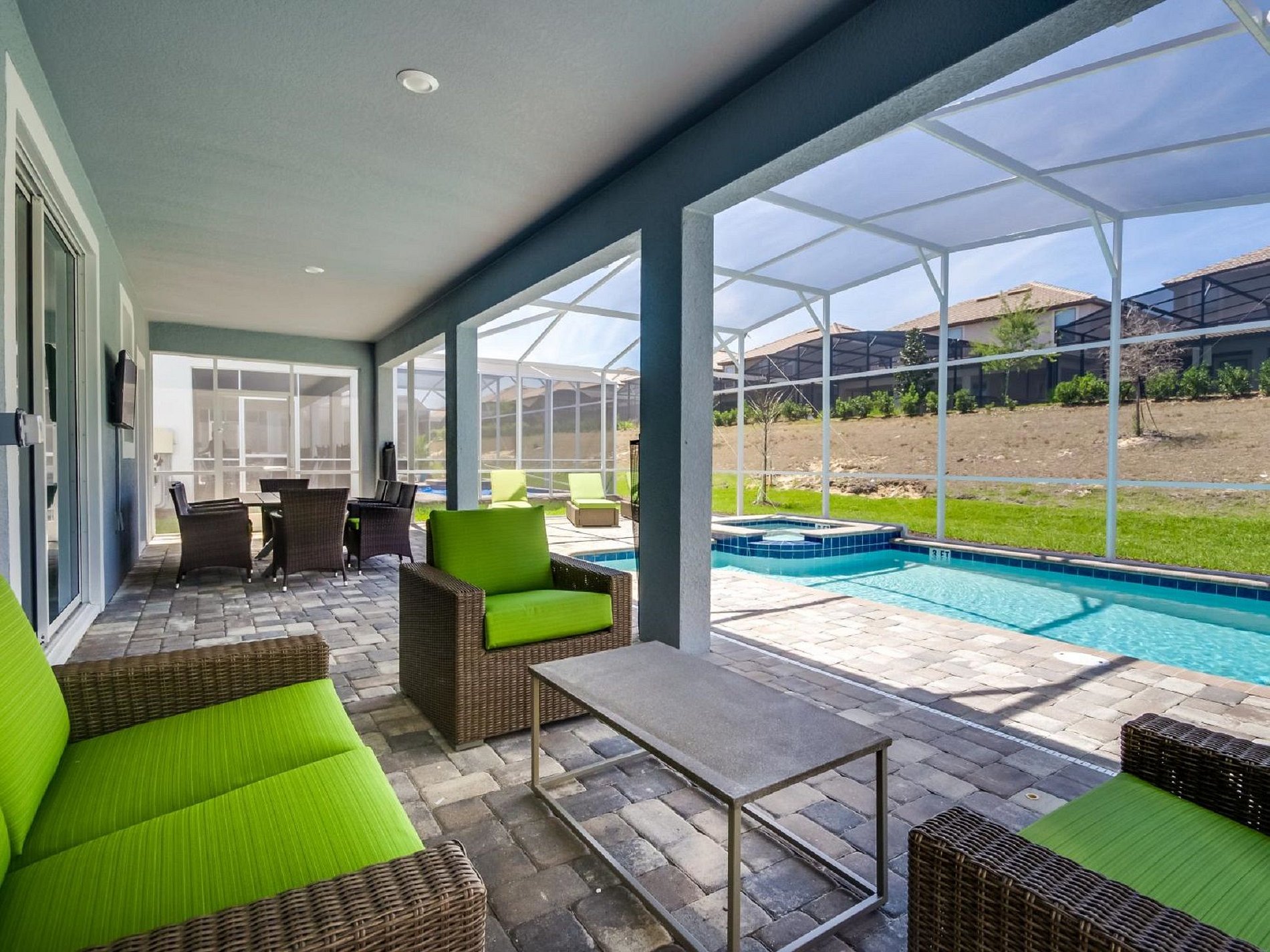 O ESPAÇO: • TV a cabo e WIFI grátis • Área de jantar formal • Toalhas/lençóis limpos • Cozinha totalmente equipada • Loft com TV de tela plana • Ar condicionado central • Máquina de lavar/secar (na casa) • Toalhas de rosto não são fornecidas • Secador de cabelo, ferro e tábua de passar • Aquecimento da piscina (custo extra) - Opcional ** • Aluguel de churrasqueira (custo extra) - Opcional • Piscina privativa + cerca de segurança para crianças • 2 quartos familiares com TV de tela plana • Código de porta privativo para cada estadia de hóspede • Lanai coberto + móveis de pátio e espreguiçadeiras • outros equipamentos entre em contato conosco para providenciar, pois temos uma grande variedade de itens disponíveis para alugar. (Custo extra)