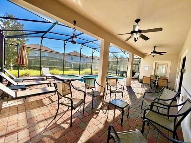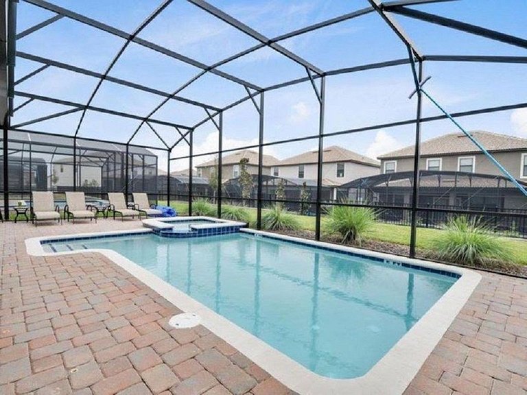 Área externa: Esta casa tem uma grande piscina, incluindo um spa, perfeito para as crianças que aproveitarão seu mergulho diário. Você certamente aproveitará horas de diversão ao sol! A área da piscina inclui uma mesa de jantar para 6 pessoas, cerca de segurança para piscina, 4 espreguiçadeiras ao ar livre para que você possa sentar e relaxar aproveitando seu churrasco na Flórida em sua varanda privativa. Você não poderia pedir um resort melhor para você e sua família. Churrasqueira e piscina aquecida/Spa são opcionais (custo extra).